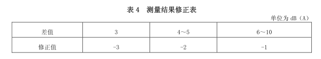 5.7.2 噪聲測量值與背景噪聲值相差在 3dB (A) ~10dB (A) 之間時,噪聲測量值與背景噪聲值的差值取整后,按表 4 進行修正。